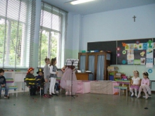 Воспитанники детского сада показали все, чему они научились за прошедший учебный год: они пели и танцевали, читали стихи и играли на музыкальных инструментах.