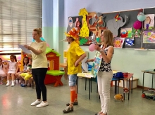 Наши детсадовцы подготовили выступления, читали стихи, танцевали, показывали свои рисунки и рисовали, выпускники получали дипломы окончания детского сада, театральный кружок «Самородок» показал мини-спектакль «Маша и три медведя».