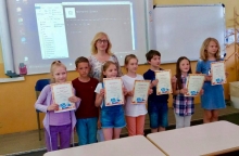 Машинист и бригадир поезда (директор и администратор школы) пожелали ребятам хороших каникулов и вручили грамоты за отличную учебу в прошедшем году. А проводницы угостили ребят вкусным чаем.